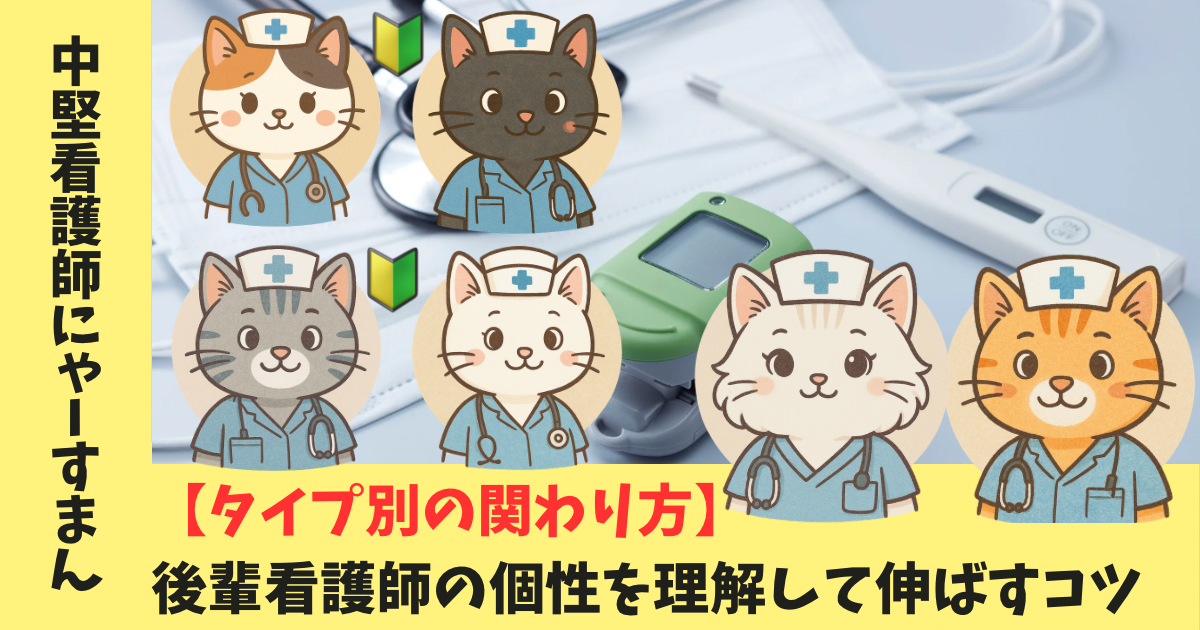 お、みにゃ!おつかれ!そうだね。新人看護師は毎年たくさん入ってくるし、本当に色々な子がいてそれぞれに合わせた指導が大変なんだよね。でも自分たちも7年目になるから「このタイプの子にはこう指導しよう」って、なんとなくわかってくるよね。