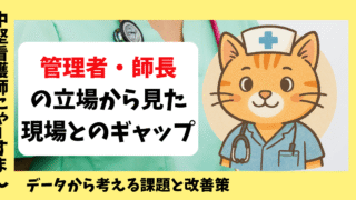 看護師の働き方 管理者・師長の立場から見た現場とのギャップ|データから考える課題と改善策 みなさん、いつもお疲れさまです!中堅看護師にゃーすまんです!看護師長や管理者は、病棟全体を運営する立場として経営・人材・安全管理など幅広い視点を持つ必要があります。一方で、現場の看護師は日々の患者ケアに直面し、時間や体力の限界を感じながら働... 2025.09.07 看護師の働き方